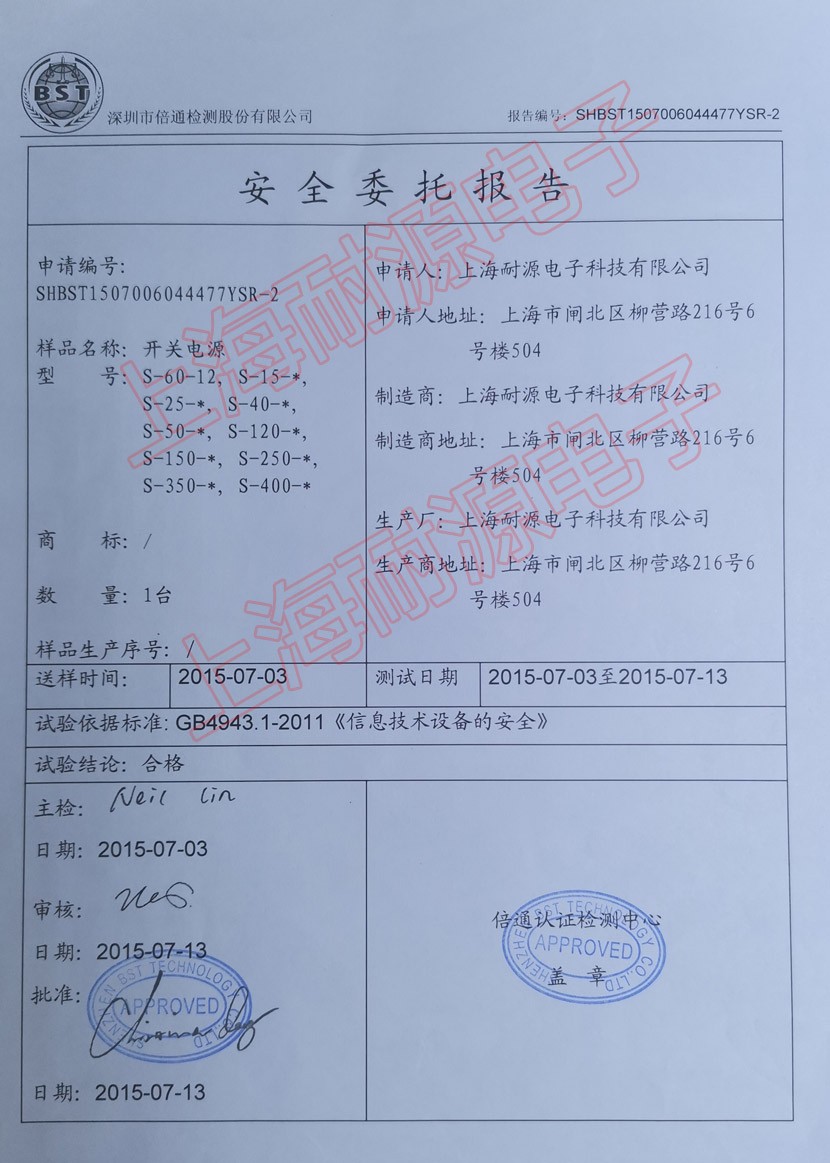 上海耐源电子CE证书3